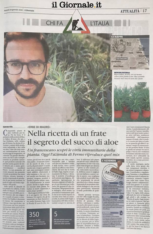 The secret of Mauro Vallesi comes from far.away. A secret that has been whispered by a Franciscan friar, Father Romano Zago, born in Brazil 85 years ago, who, studying for a lifetime and experiencing all the benefits of the aloe among the derelicts and the sick persons of the favelas, years ago fine tunes an effective immune mix. It is indeed this receipe of Father Zago , scrupulously followed by Mauro, that has become the excellent product of his farm.