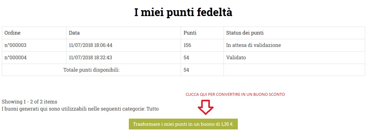 You can convert your points into a discount voucher already after the first order is delivered. To do so, simply go to the "MY REWARD POINTS" page, which you can find in the reserved area of your account, after logging in by entering your email and password.