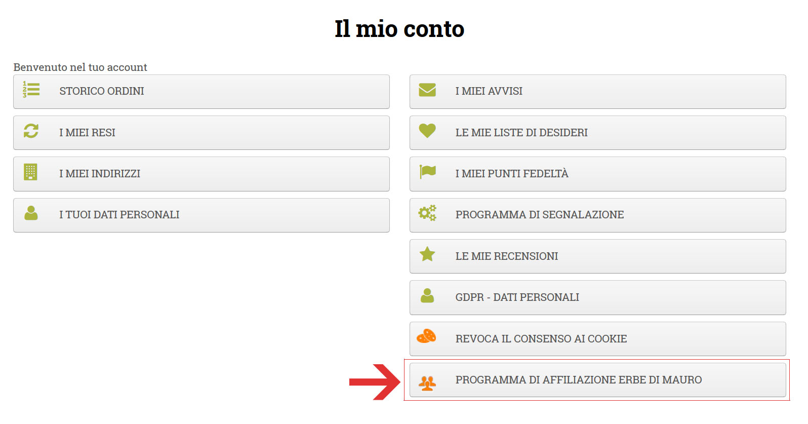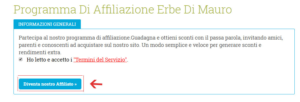 2. Clicca sul tasto "Programma di affiliazione Erbe di Mauro" (vedi figura.1)