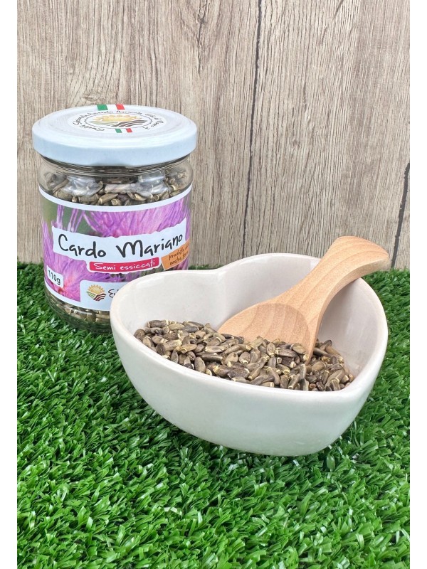 Milk thistle (Silybum marianum), is a herbaceous plant belonging to the Asteraceae family. It grows spontaneously throughout the Mediterranean maquis, i.e. the characteristic vegetation of all those lands bordering the Mediterranean Sea. The seeds of the plant are collected.