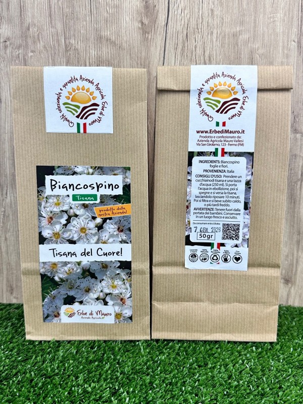 Hawthorn of our cultivation, cultivated in a natural way on our lands in Fermo, in the open countryside. Leaves and flowers picked by hand and dried at low temperatures.