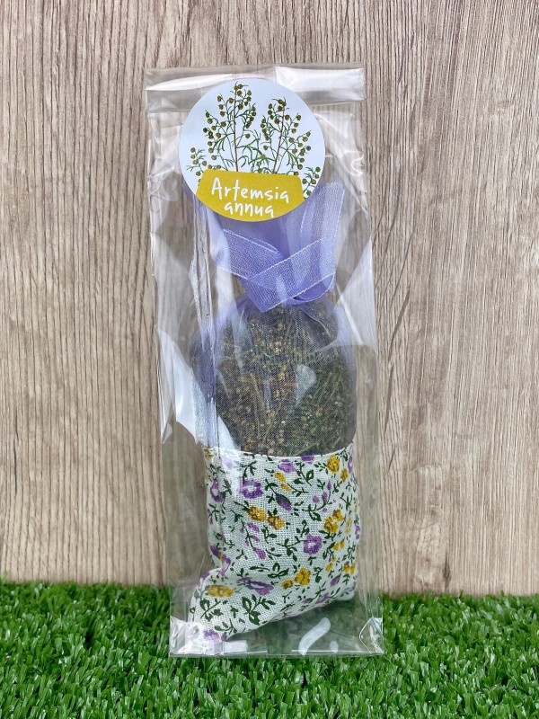 Perfuming bag based on Artemisia annua, "stuffed" with dried Artemisia annua flowers and leaves, represents a natural way to perfume clothes and closed spaces. Perfect for drawers, cupboards, laundry baskets, suitcases and cars.