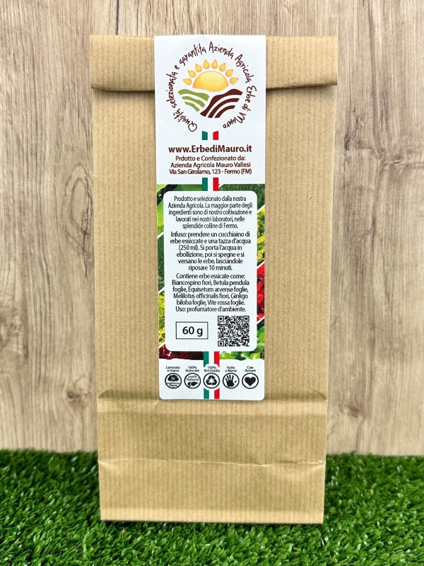 - Ingredienti: Biancospino fiori, Betula pendula foglie, Equisetum arvense foglie, Melilotus officinalis fiori, Ginkgo biloba foglie, Vite rossa foglie.